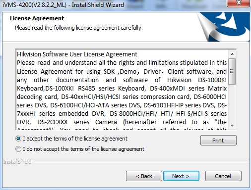 Chọn ” I accept the terms of the license agreement ” -> Next để tiến hành cài đặt ứng dụng IVMS4200.