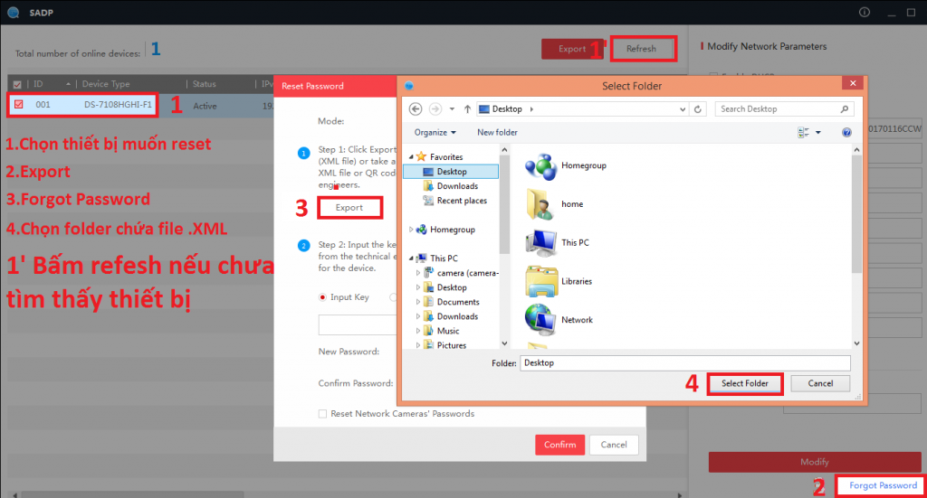 - Nếu là camera IP thì chọn vào dòng “Reset password camera’s password“
