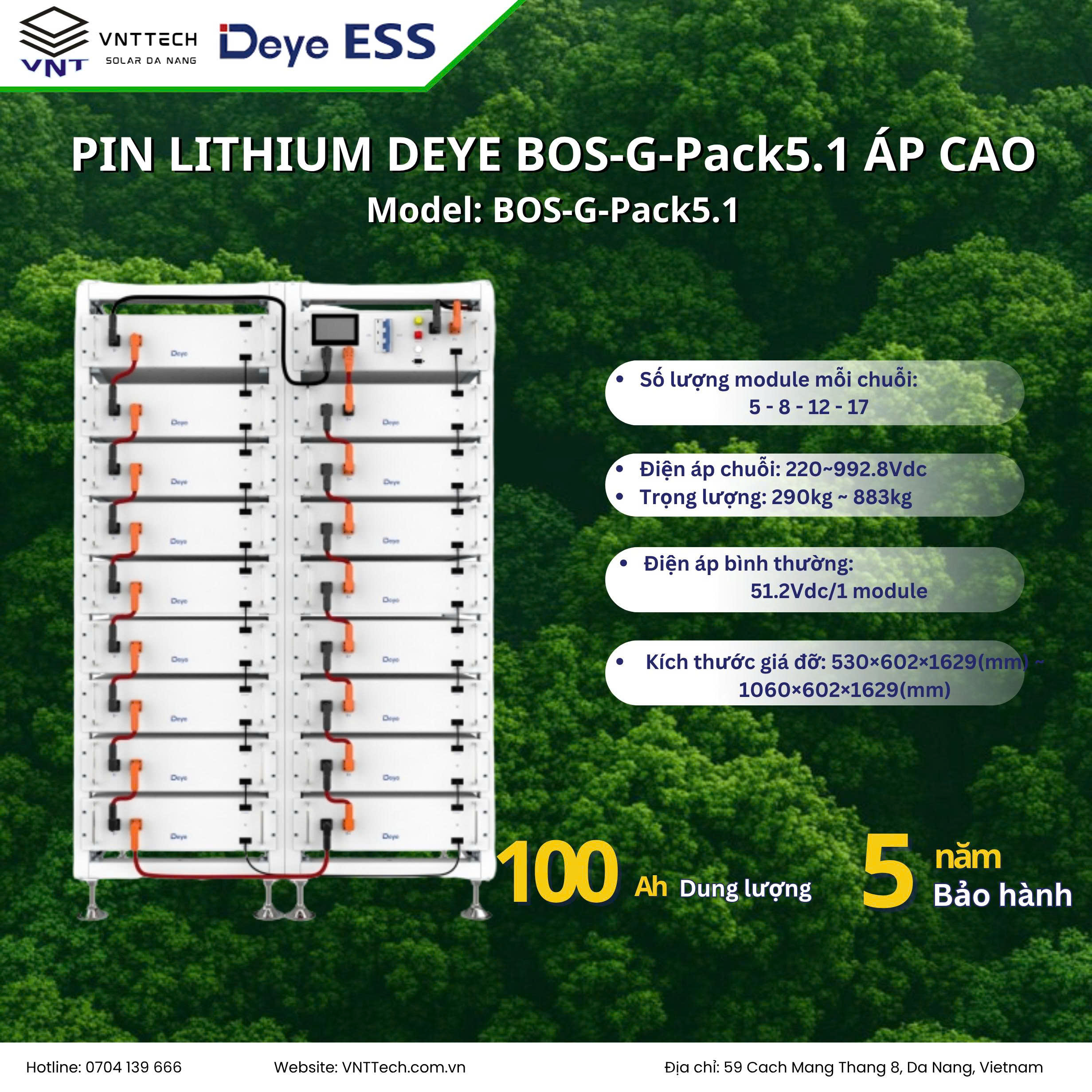 PIN LITHIUM DEYE MODEL : BOS-G-Pack5.1 Áp Cao